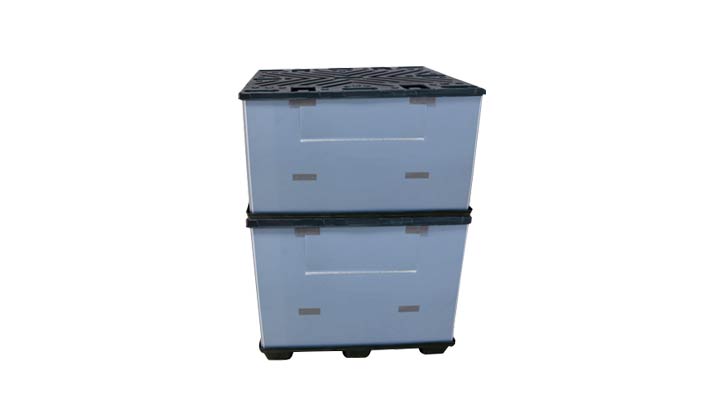 简述:围板箱包括托盘、箱体、箱盖,通过叠装方式并由一段以上的围板组成;围板由四片或六片木板和合页组成;合页固接于相邻的两片木板的角部,页体下部具有向下延伸并向外弯的合页脚,合页脚内侧套接于托盘的角部外侧或下一段围板转角处的合页上部外侧。